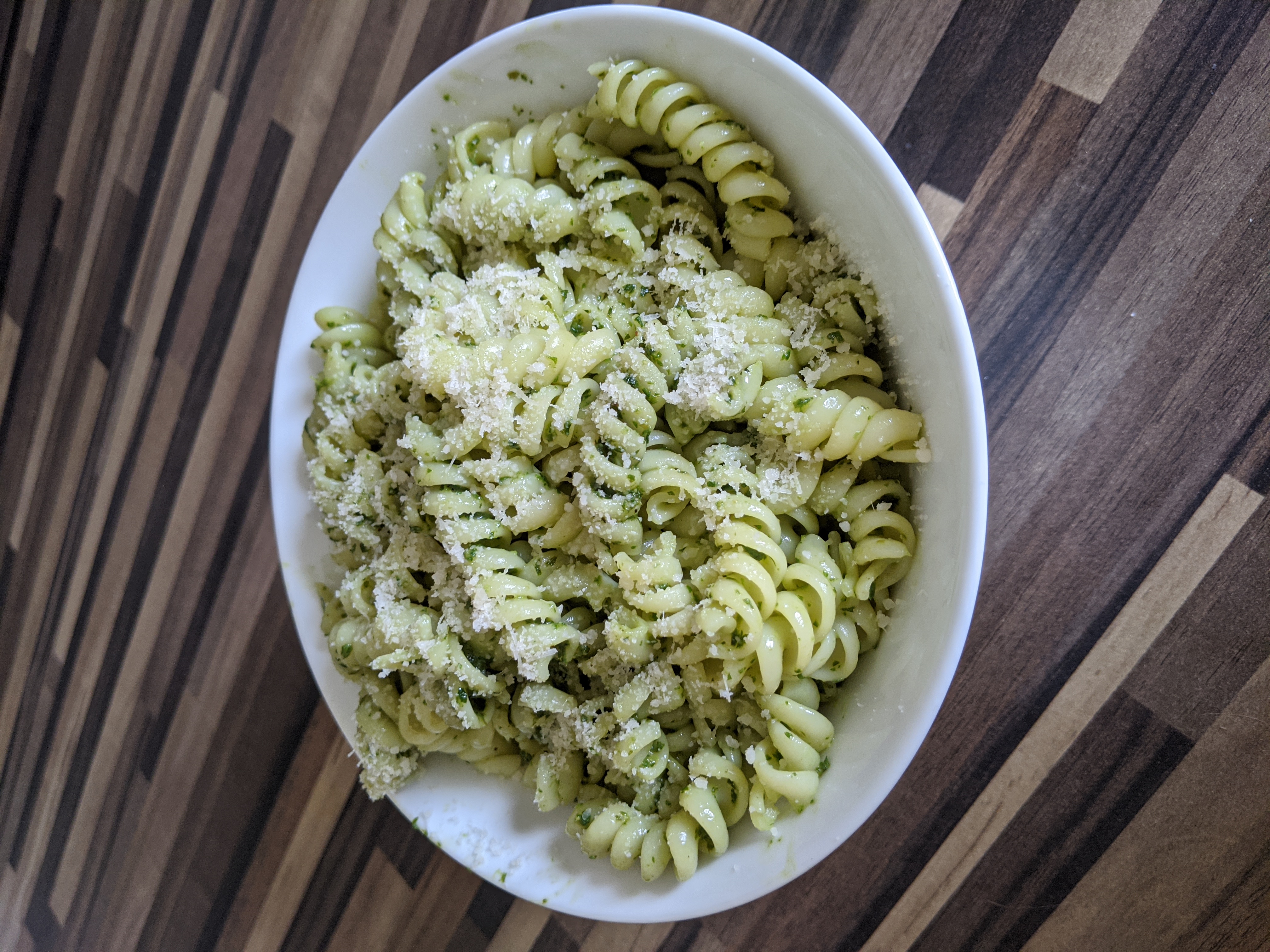 Mixer l'ail, les fânes, les pignons de pin et la moitié de l'huile